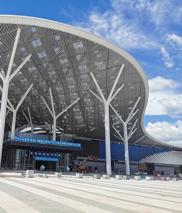幕墻類型:屋面玻璃采光頂+鋁板幕墻、鋁合金吊頂格柵幕墻、蜂窩鋁板幕墻、框架式明框幕墻等