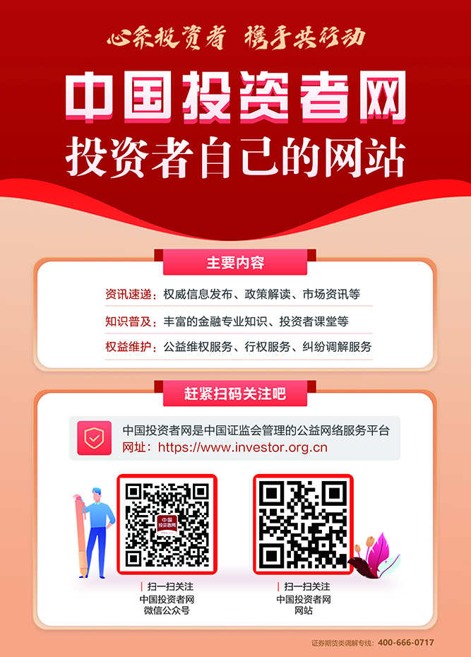 如果大家想了解最權(quán)威投資知識、如何維護投資權(quán)益、證監(jiān)會最新資訊等,歡迎大家積極關注“中國投資者網(wǎng)”公眾號和網(wǎng)站。