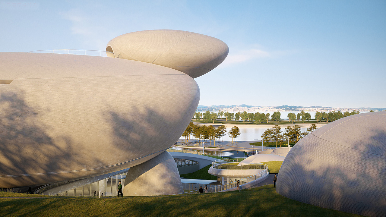 項目設計:MAD建筑事務所 幕墻類型:石材幕墻、UHPC幕墻、水幕亞克力采光頂等