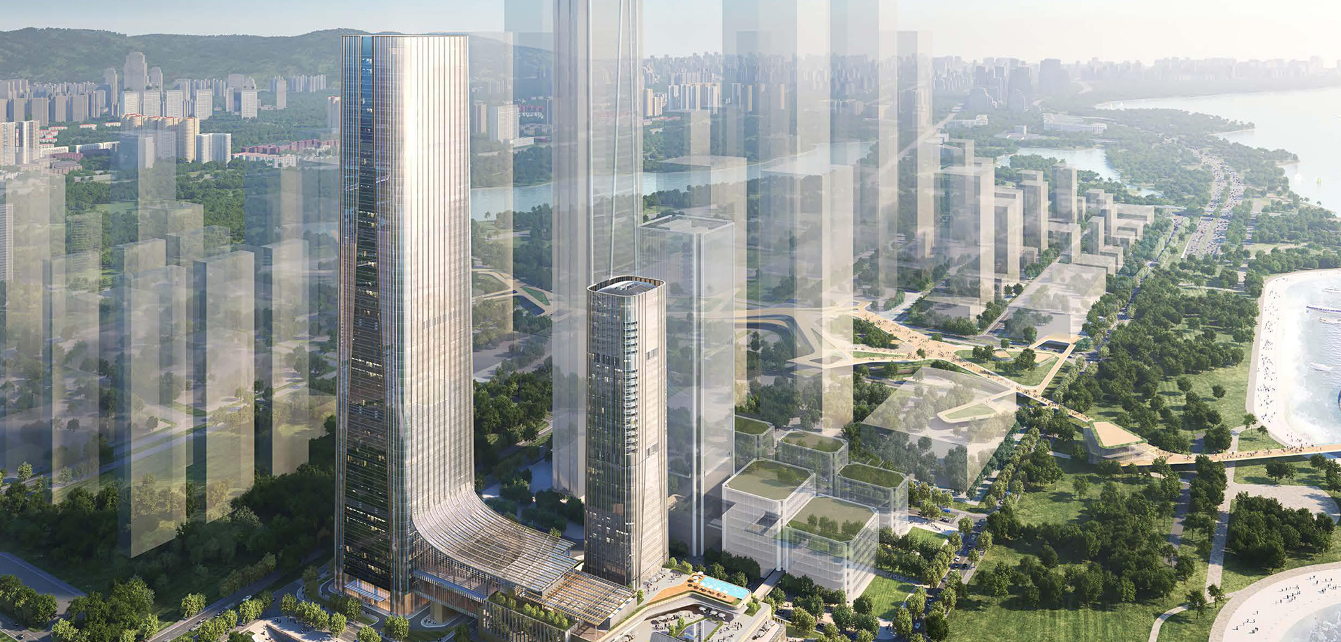 建筑高度:300米(A塔62層)、170米(B塔) 幕墻面積:12.97萬㎡ 項(xiàng)目設(shè)計(jì):美國Gensler建筑事務(wù)所 幕墻類型:?jiǎn)卧讲A粔Α⒖蚣苁讲A粔Φ?