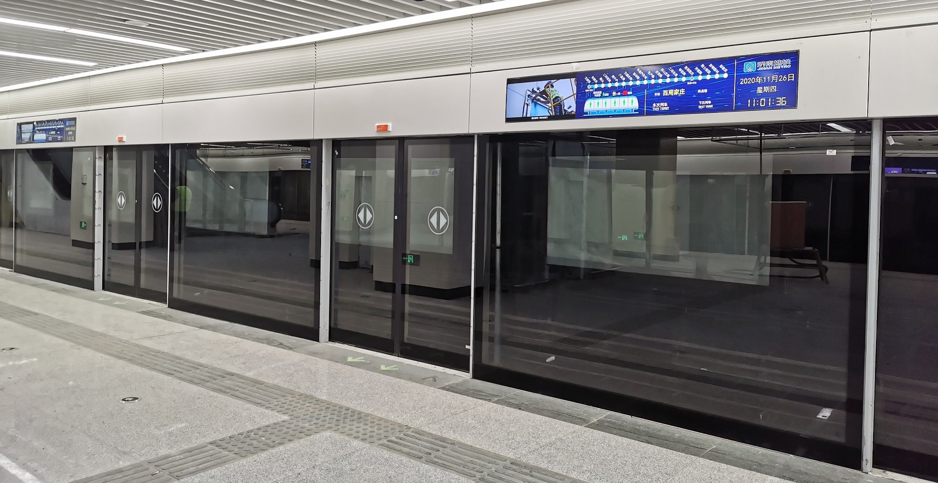 濟南R2線一期18座地下車站共36側設置全高可調通風型站臺門系統,1座高架車站共2側設置半高站臺門系統。