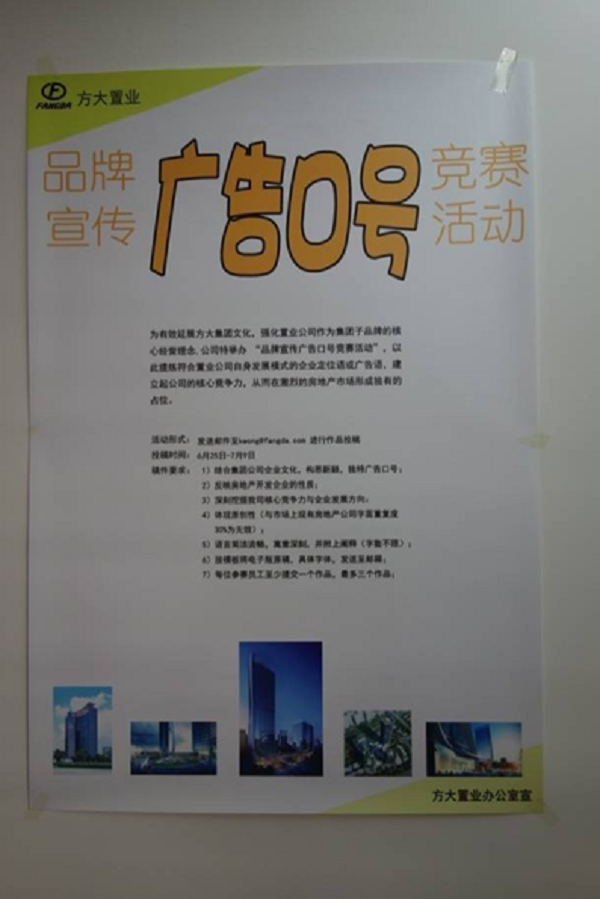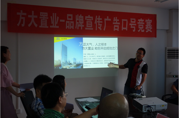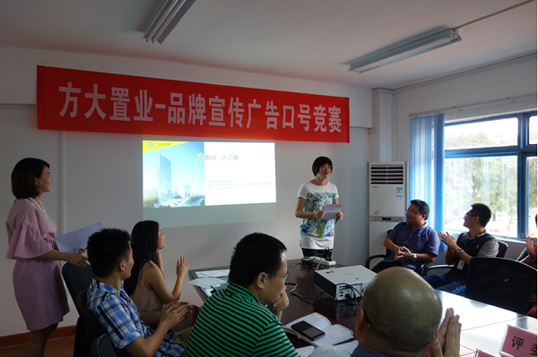 7月16日,方大置業“品牌宣傳廣告語口號競賽”活動決賽在方大廣場綜合樓三樓會議室舉行。經過三周時間的征稿、作品展示、初選、復選,最終選出了十篇優秀作品進入決賽。方大置業總經理及相關領導、辦公室和營銷策劃部負責人擔當本次決賽評委。