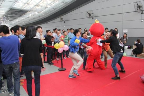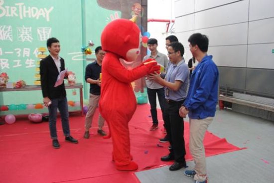 下午四時許,壽星們紛紛入場,在入口處與福猴擊掌相慶,在享用精美的小食甜點之后,即開啟了緊張激烈的游戲環節。活動當天共進行了投壺、最美猴音、踩氣球三輪游戲。在投壺游戲環節中,壽星們一一登場,上演了“10中6”、“4連中”等高水準表演,引起現場陣陣驚呼;“最美猴音”環節引爆了現場氛圍,當美妙的歌曲響起,猜中曲目答案的壽星如箭矢離弦,奮力沖刺抱住福猴,并向主持人大聲報出曲目答案,不少壽星因心情激動,用力過猛,差點與福猴來了個“倒地摔”,歡樂的場面引起哄堂大笑;踩氣球環節則絲毫不亞于一場“小型格斗”,壽星們充分展示自己的智慧與實力,奮力踩爆對手腳上系著的氣球,矯捷的身手high翻全場。游戲中,每輪成功闖關的選手還領取到LED護眼燈、福猴玩偶等豐富實用的獎品。
