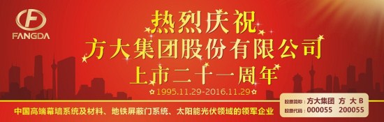 開拓進取,塑造了方大集團勇于創新的獨特氣質;光榮與夢想,賦予了方大集團繼往開來、再創輝煌的崇高責任。在經濟新常態背景下,方大集團將繼續傳承“科技為本,創新為源”的經營理念,深耕高端幕墻系統及材料、軌道交通屏蔽門系統、太陽能光伏以及房地產等產業領域,努力為市場提供更多優質產品,為社會創造更多財富,為投資者帶來更加豐厚的紅利。