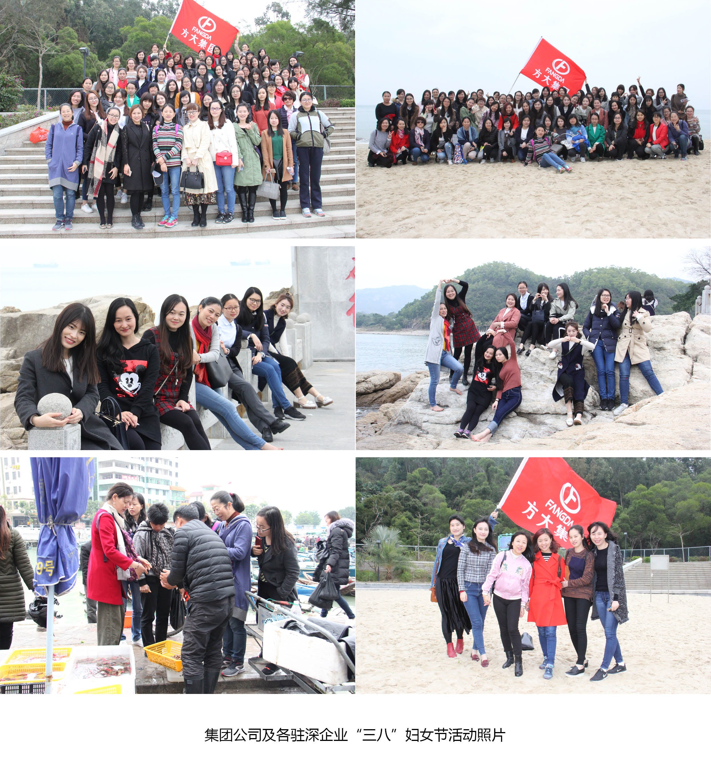 在深圳,集團公司及各駐深企業(yè)組織全體女員工前往深圳東部海岸進行休閑觀光及聚餐活動。下午1點30分,駐深企業(yè)女員工一行80余人在深圳方大大廈集結(jié)完畢,隨即分乘兩輛大巴前往深圳東部官湖角海灘。約90分鐘車程后,觀光團達到目的地。在這個屬于女性同胞的節(jié)日里,天公也別樣作美,上午淅瀝瀝的大雨,一到下午就停了,地面積水也逐漸干了。美麗的官湖角海灘上,暖風輕拂,碧海一望無際。美麗的方大女員工們在海灘上合影留念,結(jié)伴游玩。她們或放眼眺望欣賞海景,或高舉手機專注地自拍,或并肩攜手踏浪,其樂融融。離開官湖角海灘后,方大女員工們一道專程前往惠陽澳頭村聚餐,一品滋美的海鮮大餐。