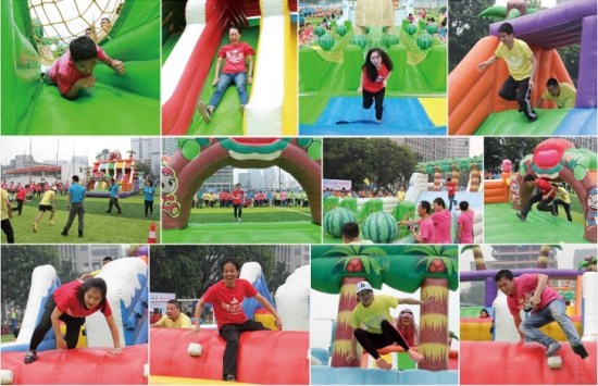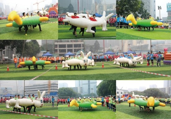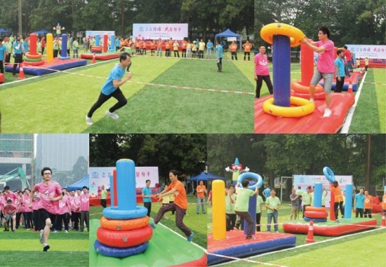 本次運(yùn)動(dòng)會(huì)設(shè)置了龜兔賽跑、超級(jí)漢諾塔、快樂(lè)gogogo、趣味拔河、納斯卡巨畫(huà)等趣味項(xiàng)目,比賽場(chǎng)上處處充滿著歡聲笑語(yǔ),大家玩得不亦樂(lè)乎!在龜兔賽跑環(huán)節(jié),各代表隊(duì)的隊(duì)員們分別頂著巨型充氣“烏龜”、“兔子”笑著跑著,奮力競(jìng)爭(zhēng),爭(zhēng)取最好的比賽成績(jī);在超級(jí)漢諾塔環(huán)節(jié),考驗(yàn)的不僅有團(tuán)隊(duì)成員的運(yùn)動(dòng)能力,還有團(tuán)隊(duì)內(nèi)部的組織協(xié)作效率;在快樂(lè)gogogo環(huán)節(jié),更是掀起了所有參賽員工的火熱激情,他們?cè)跉鈮|城堡中穿梭、攀爬、滑行、滾動(dòng),在回味和體驗(yàn)孩童時(shí)代樂(lè)趣的同時(shí),為自己的團(tuán)隊(duì)爭(zhēng)取好的名次;趣味拔河環(huán)節(jié)是這次運(yùn)動(dòng)會(huì)的最高潮,只見(jiàn)加油的叫喊聲震天動(dòng)地,拔河的隊(duì)員無(wú)不神態(tài)激越,使出渾身之力,將拔河繩拉得吱吱地響;最后是納斯卡巨畫(huà)環(huán)節(jié),參與運(yùn)動(dòng)會(huì)的全體員工一同用五顏六色的油彩,分工合作,共同繪出印有方大集團(tuán)logo的巨型圖畫(huà)。通過(guò)百米高空上無(wú)人機(jī)的航拍我們看到,在530余名方大人簇?fù)碇械姆酱?/span>logo巨畫(huà),在燦爛陽(yáng)光的照耀下,正閃閃發(fā)光,正如她在行業(yè)中的響亮知名度一樣。