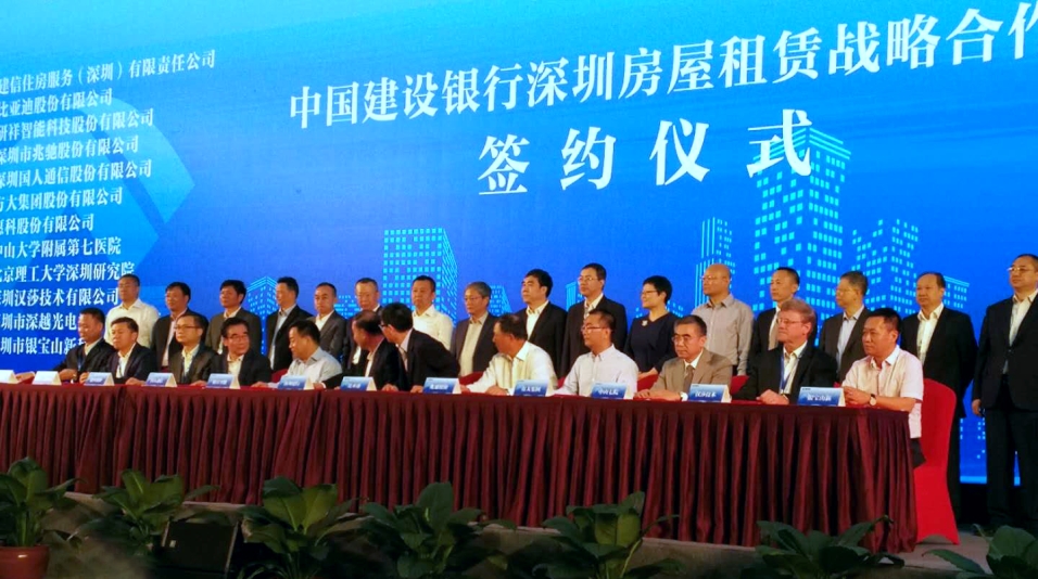 【新華社深圳11月3日電】 3日,建設銀行深圳分行與招商、華潤、萬科、恒大、中海、碧桂園、星河等11家房地產公司,以及比亞迪、方大集團、研祥智能、兆馳等11家企事業單位舉行住房租賃戰略合作簽約儀式,推出5000余套包括“CCB建融家園”在內的長租房源,并發布個人住房租賃貸款產品,標志著建設銀行正式進軍深圳住房租賃市場。