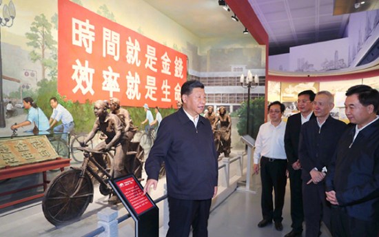 10月24日,中共中央總書記、國家主席、中央軍委主席習近平來到深圳市福田區,在深圳市當代藝術館與城市規劃展覽館參觀了“大潮起珠江——廣東改革開放40周年展覽”。隨后又前往深圳前海考察,參觀了深圳市萬科前海企業公館展覽廳。