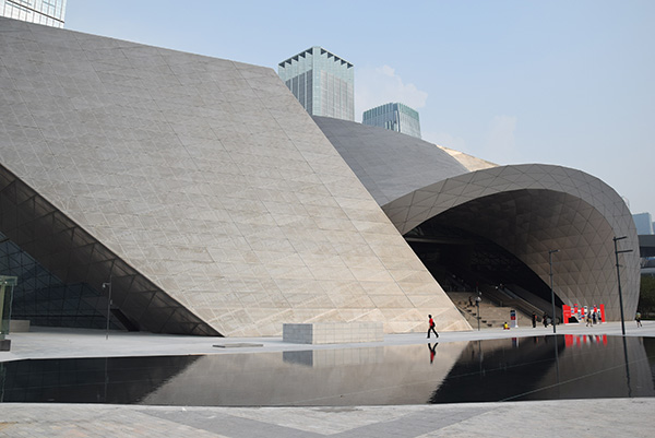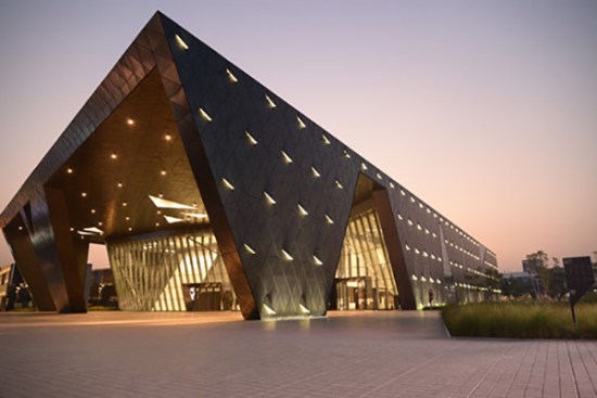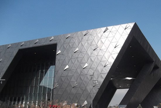 深圳市當代藝術館與城市規劃展覽館坐落于深圳中心區中軸線上,是中心區最后一個大型公共文化建筑,總建筑面積約8萬平方米。作為推廣新銳藝術、展示城市的新地標,該建筑以柔和的空間造型和藝術形象引起了廣泛的關注。該項目采用了大量的三角形玻璃幕墻及三角形穿孔不銹鋼+玻璃的雙層幕墻,實現了外立面傾斜、扭曲和旋轉的曲面變化,在確保最佳的采光效果同時,兼顧了遮陽、亮化等功能性需要,極富想象力和生命力,但也對幕墻平整度、施工精細度等帶來極大的挑戰。方大建科的工匠們,克服了幕墻形式復雜、材料品種規格多、施工精度高等種種困難,打造了這座兼具美感和功能性的“表皮”。